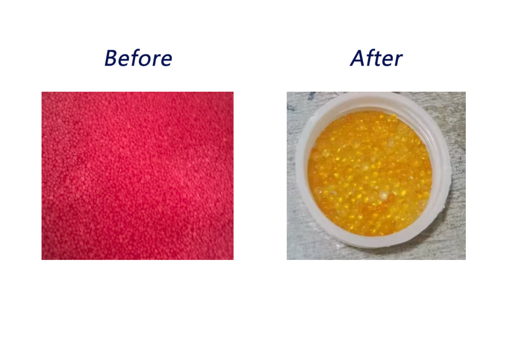 The product has the same adsorption and moisture resistance functions as narrow pore silica gel, and is characterized by color change with the increase of humidity in the moisture absorption process. It can not only indicate the ambient humidity, but also directly show whether the desiccant needs to be changed. This product can be used as desiccant independently, or used with narrow pore silica gel.